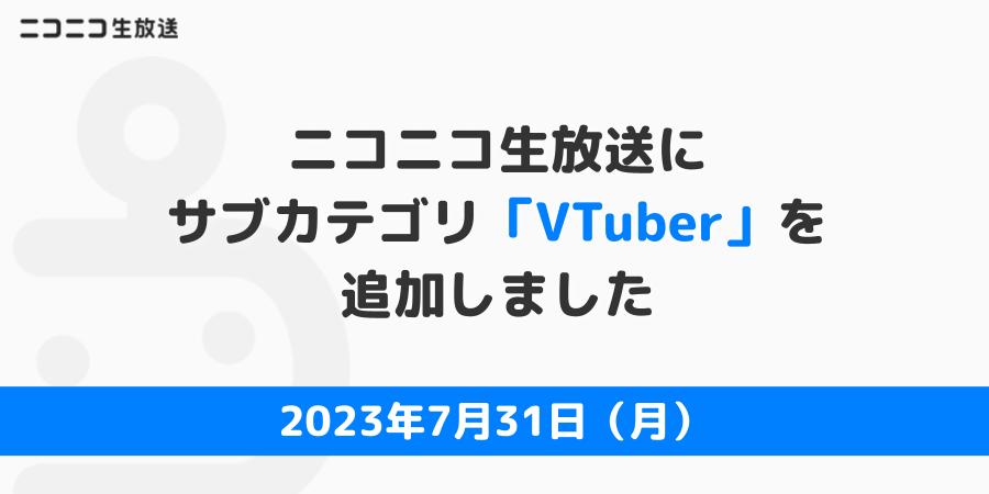 ドワンゴは31日、ニコニコ生放送内配信・視聴の活性化を目的として、サブカテゴリに「VTuber」を追加したことを発表した。