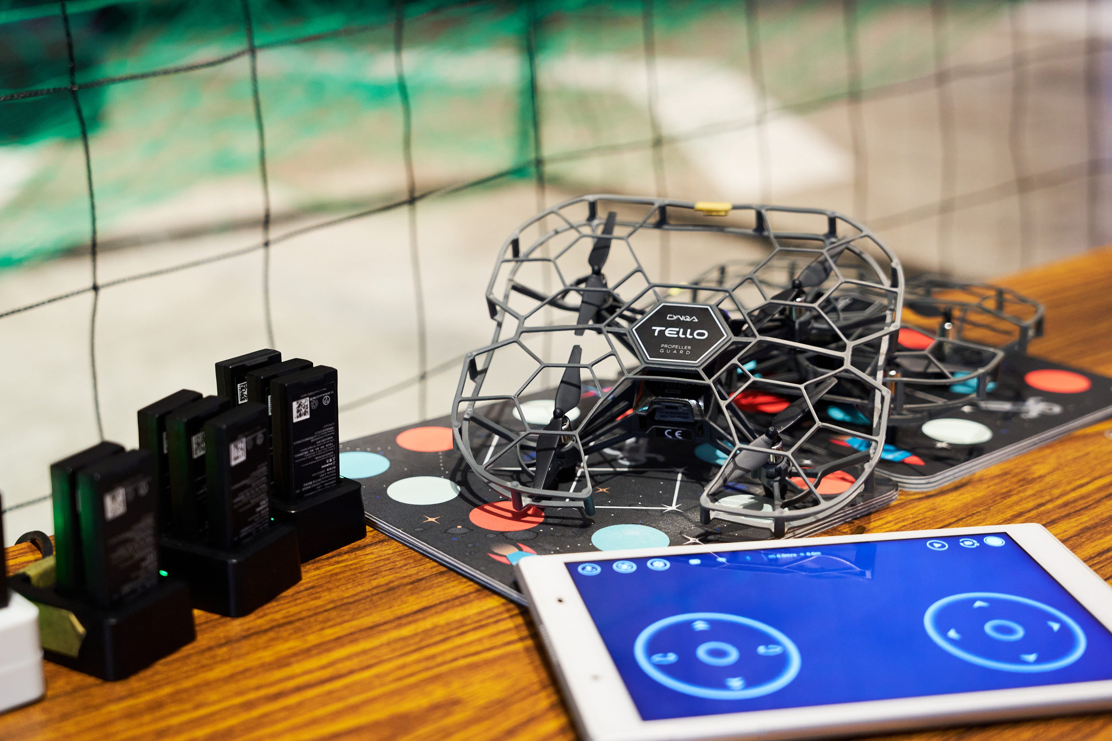 小型のドローンを使って的あてゲームにチャレンジできます。