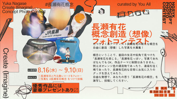 二次元世界での活動に加えて、下北沢でのライブパフォーマンスやLocal Visionsとのコンピレー ションアルバムのリリースなど三次元世界が軸の活動も増やしている彼女。今回のフォトコンテストは、8月25日のワンマンライブ「Eureka」を控え、これまでの長瀬有花像や今までの長瀬有花という概念をファンとともに拡張する目的でじしする。具体的には、ファンが想像した新たな長瀬有花の概念を写真にしてSNSに投稿してもらう。