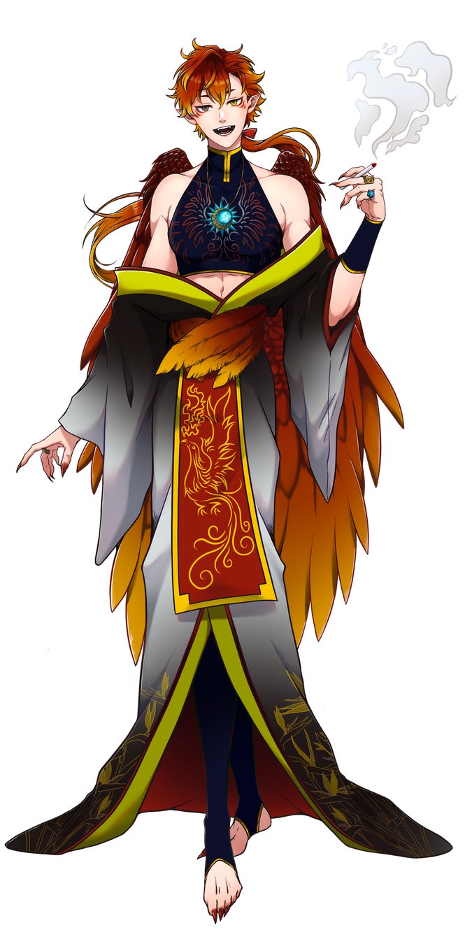 人間の姿になれると知って、不死鳥の姿から人間の姿になってみたんだ。(翼が隠しきれなかったのは内緒な…)