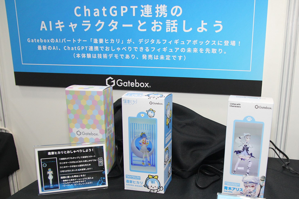 また、「Gatebox」は、「デジタルフィギュアボックス」をVTuberなどのファン向けグッズとして活用するプランも開発中。「TGS2023」のブースには、そのサンプルもデモ展示されている。「Gatebox」のオリジナルキャラクターでAIパートナーの「逢妻ヒカリ」が「デジタルフィギュアボックス」の中に入っているのだが、ChatGPTと連携しており、音声会話も楽しめるのだ。