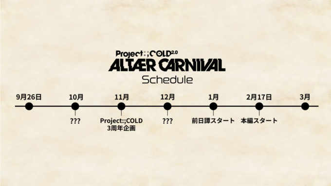 Team Project:;COLDは26日、日常侵食型ミステリーゲーム「Project:;COLD 2.0 ALTÆR CARNIVAL」(プロジェクトコールド2.0 アルター・カーニバル)を2024年2月17日から開始すると発表した。価格は無料。