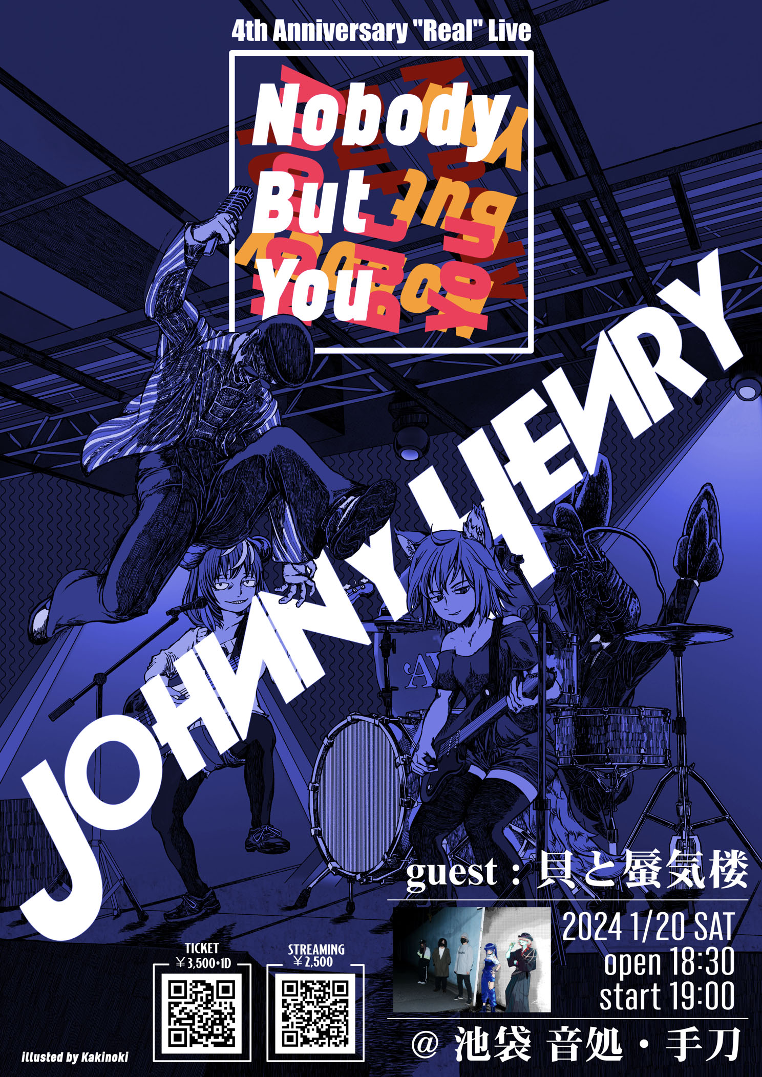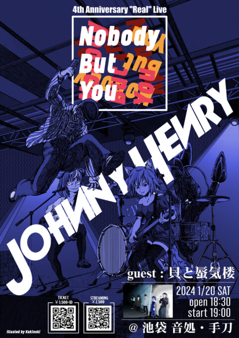 バーチャルブルースロックバンド「JOHNNY HENRY」(ジョニーヘンリー)は24日、活動開始4周年記念として音楽ライブ「Nobody But You」を池袋 ⾳処・⼿⼑にて2024年1月20日に開催すると発表した。
