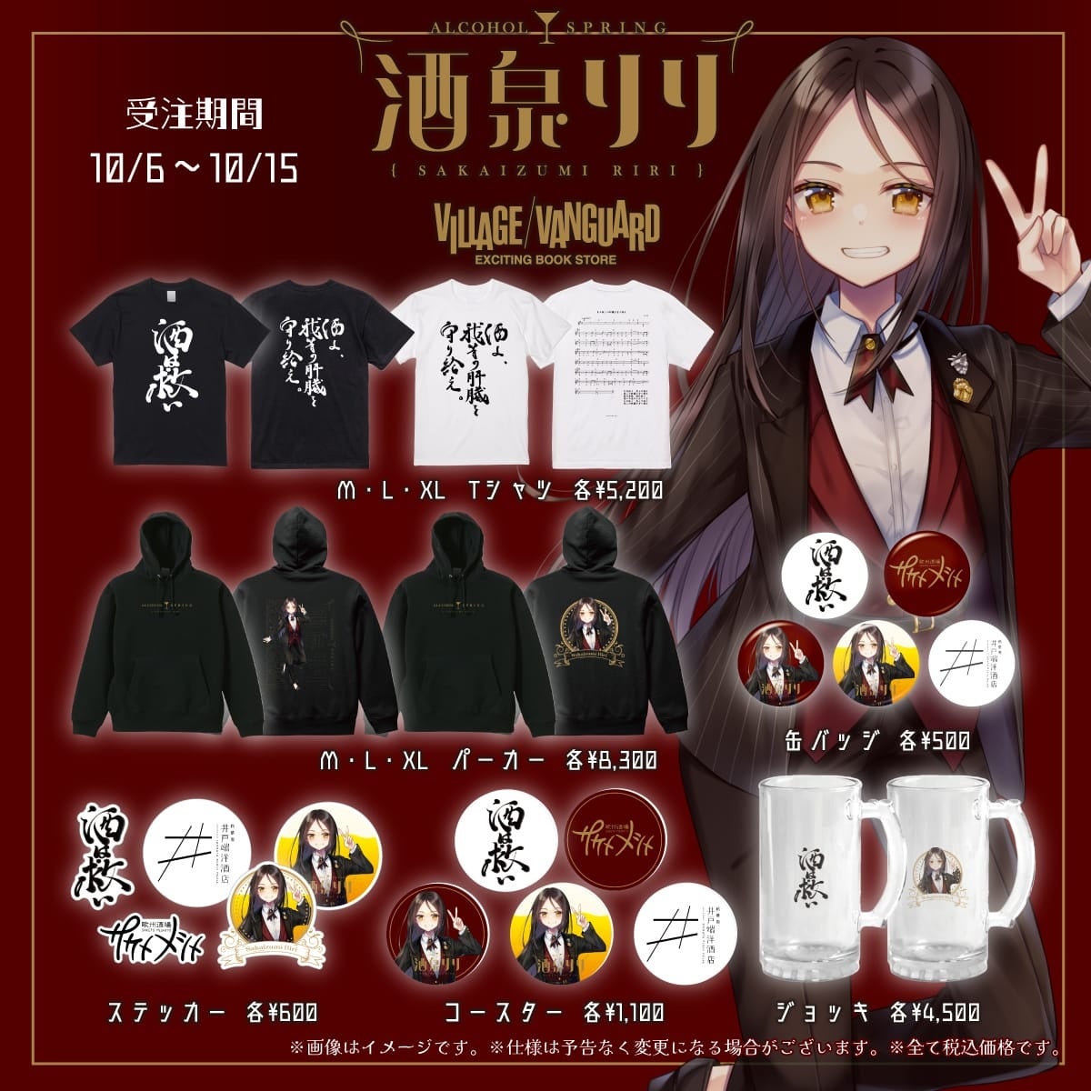 2023年10月6日(金)より、人気Vtuberの【酒泉りり】とヴィレッジヴァンガードのコラボグッズがオンラインストアにて発売決定!!酒泉りりさんのファンはもちろんのこと、すべての酒好きに送る酒好きグッズをラインナップ!Tシャツやパーカー等のアパレルグッズや、コースターなど普段使いできるグッズも作成しました!ヴィレッジヴァンガード限定商品となりますので、ぜひチェックしてみてください!