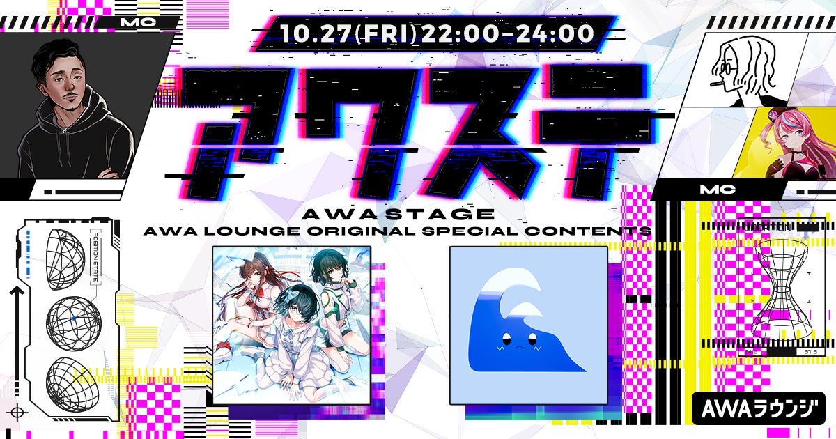 AWA株式会社(本社:東京都港区、代表取締役CEO:冨樫晃己)が運営する、サブスクリプション型(定額制)音楽ストリーミングサービス「AWA(アワ)」は、2023年10月27日(金) 22:00より、無料で誰でも参加できるオンライン空間「ラウンジ」で、ネットシーンを中心とした注目アーティストを毎回ゲストに招き、有識者であるMCとともにシーンの次のステージを切り開く新番組「AWAステージ(通称:アワステ)」の第11回を開催いたします。