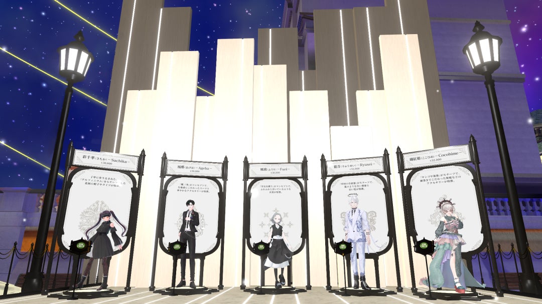 アバターは、VTuber/3Dモデラーのもちひよこ氏をはじめとする、未知の可能性に挑戦する14名のクリエイターを起用し、制作しました。アバターのラインナップは、「瑚紅姫(ここひめ)」「龍青(りゅうせい)」「風璃(ふうり)」「鳳蝶(あげは)」「彩千華(さちか)」の5体で販売価格は、3万円~3万6000円(税込)です。上質で特別なシーンに適した装いを意識し、百貨店ならではの「正装」をコンセプトに制作しました。メタバース上で綺麗に見えるよう精巧かつ緻密に制作いたしました。