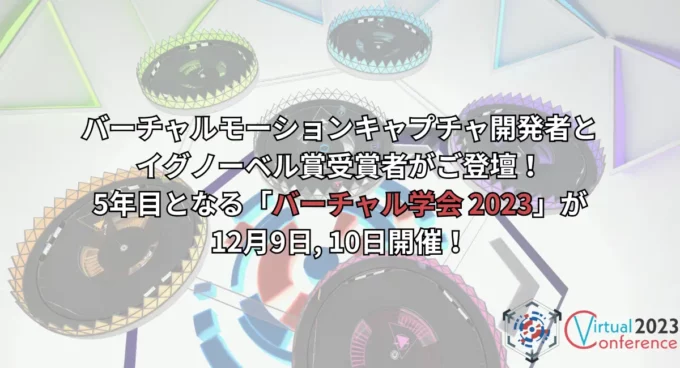 VR空間での学術発表や交流を促進するイベント「バーチャル学会 2023」が2023年12月9日と10日に開催される。本イベントは、電子情報通信による三次元CG領域のインタラクションを可能にするVR空間で行われ、技術の発展と社会・経済活動の促進を目指している。基調講演には、バーチャルモーションキャプチャ開発者「あきら」氏と2023年イグノーベル賞受賞者「宮下芳明」教授が登壇。今年度は、オーガナイズドセッションのアイデア会、招待デモなどをはじめとした新たな企画にも挑戦している。