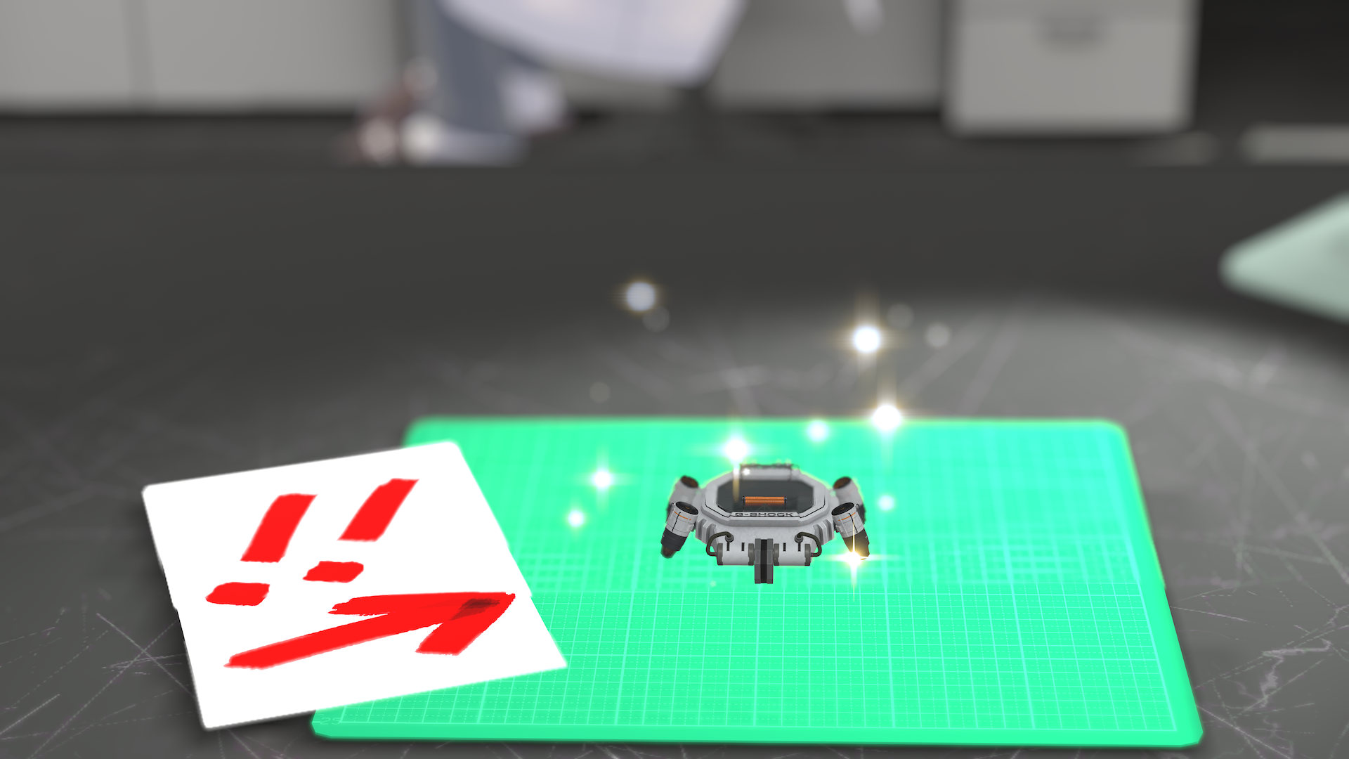 ホワイトボードにも英語表記があったが、説明に対して英語字幕が同時に出てくるところはホスピタリティが高い。本ワールドはVRChatを始めたての人でもすぐに楽しめるように作れられているといい、「もしよろしければ、耐久試験のレポートをお願いできないでしょうか?」と言われることで、VRChatで日頃遊んでいる方でなくても写真を撮ってみたくなるのでは、と思った。