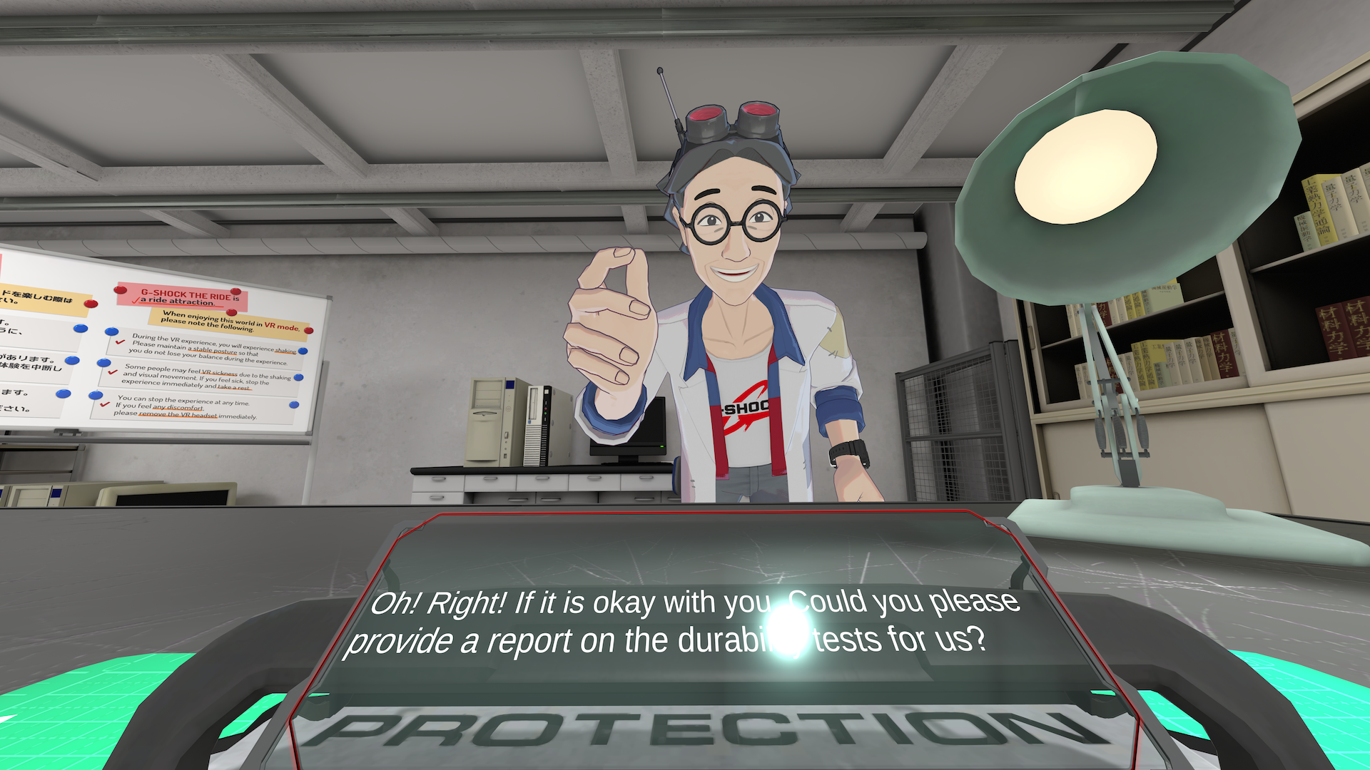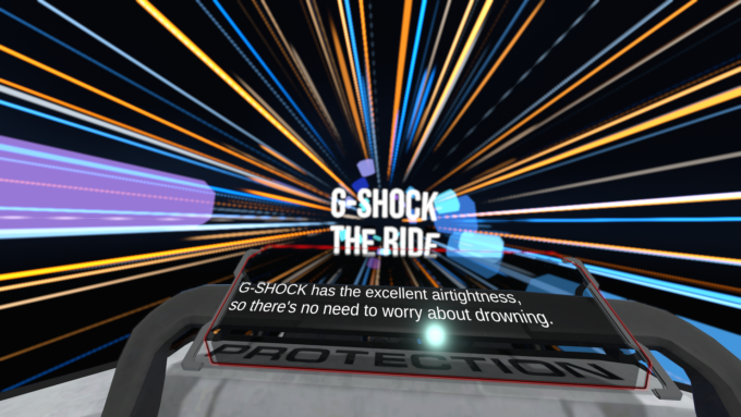 「まずは何も知らない状態で楽しんでください!」という言葉に乗せられてワクワク感と戸惑いを以って体験してみると、「未来のG-SHOCKの耐久試験を体験する」というコンセプトのもと、「G-SHOCKに乗り込んで耐久試験を体験する」というVRならではのアトラクションによって、水圧、衝撃、その他、G-SHOCKが受けるあらゆる耐久試験を体験できるものになっていた。しかもワールドはQuest対応とのこと。