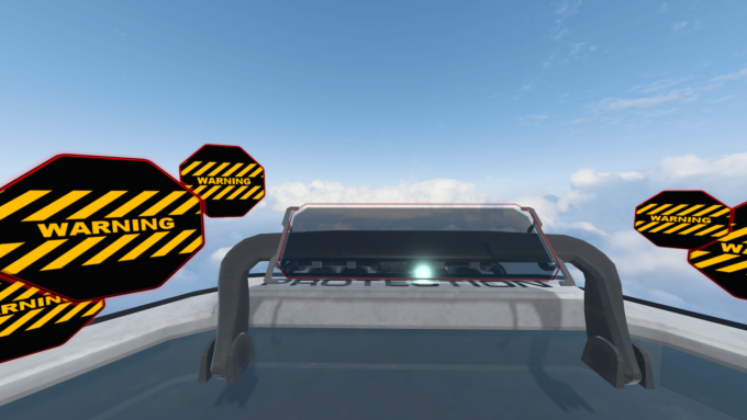 眼前には警報マークと空が広がる。ハンマー衝撃試験の後で一体何が起こってしまうのか、続きは実際に体験して、ぜひレポートしてみよう! きっと興奮を伝えたくなるはずだ。
