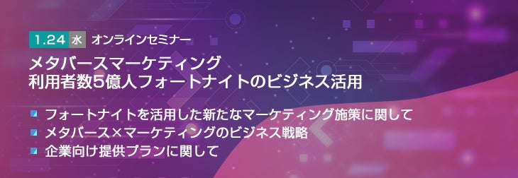 トランスコスモス株式会社(代表取締役共同社長:牟田正明、神谷健志)は、オンラインセミナー<メタバースマーケティング>利用者数5億人フォートナイトのビジネス活用を1月24日(水)に開催します。