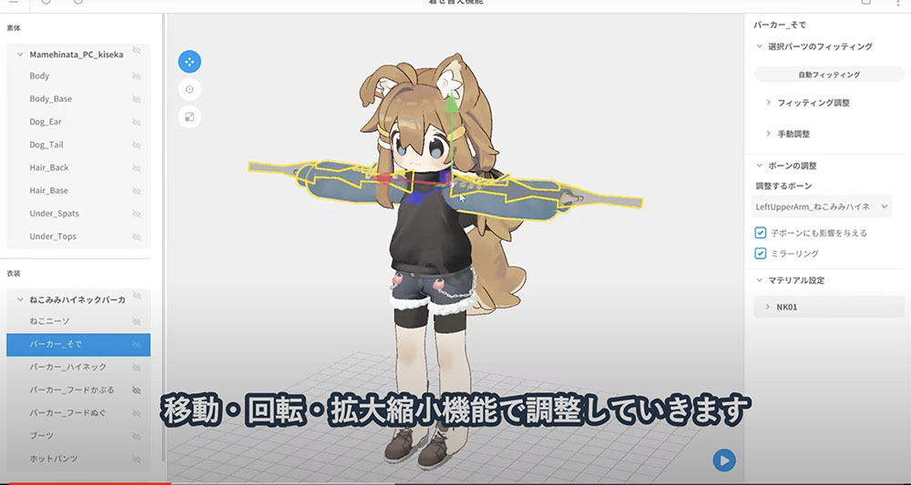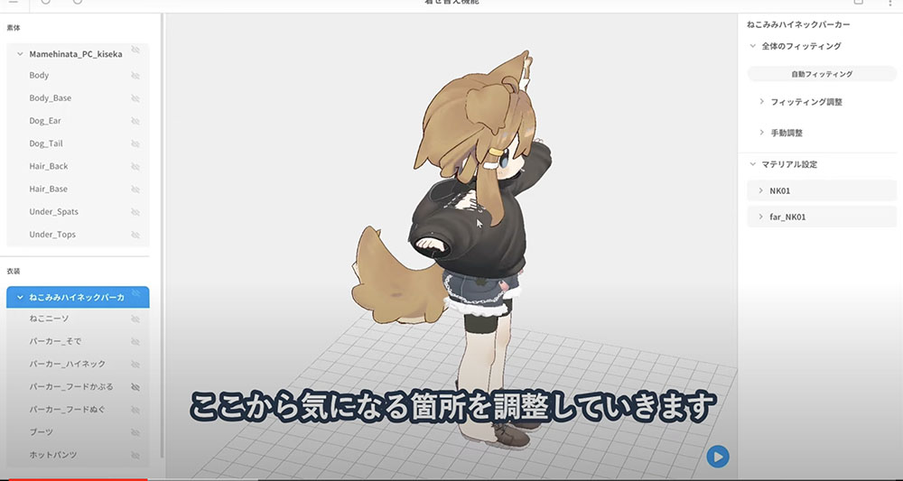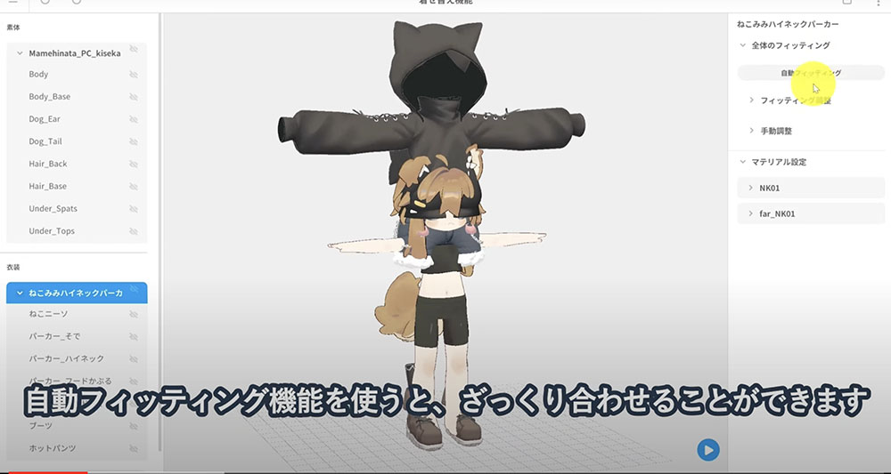 ・ワンクリックでモデルの体型に衣装をフィットさせる「自動フィット」
