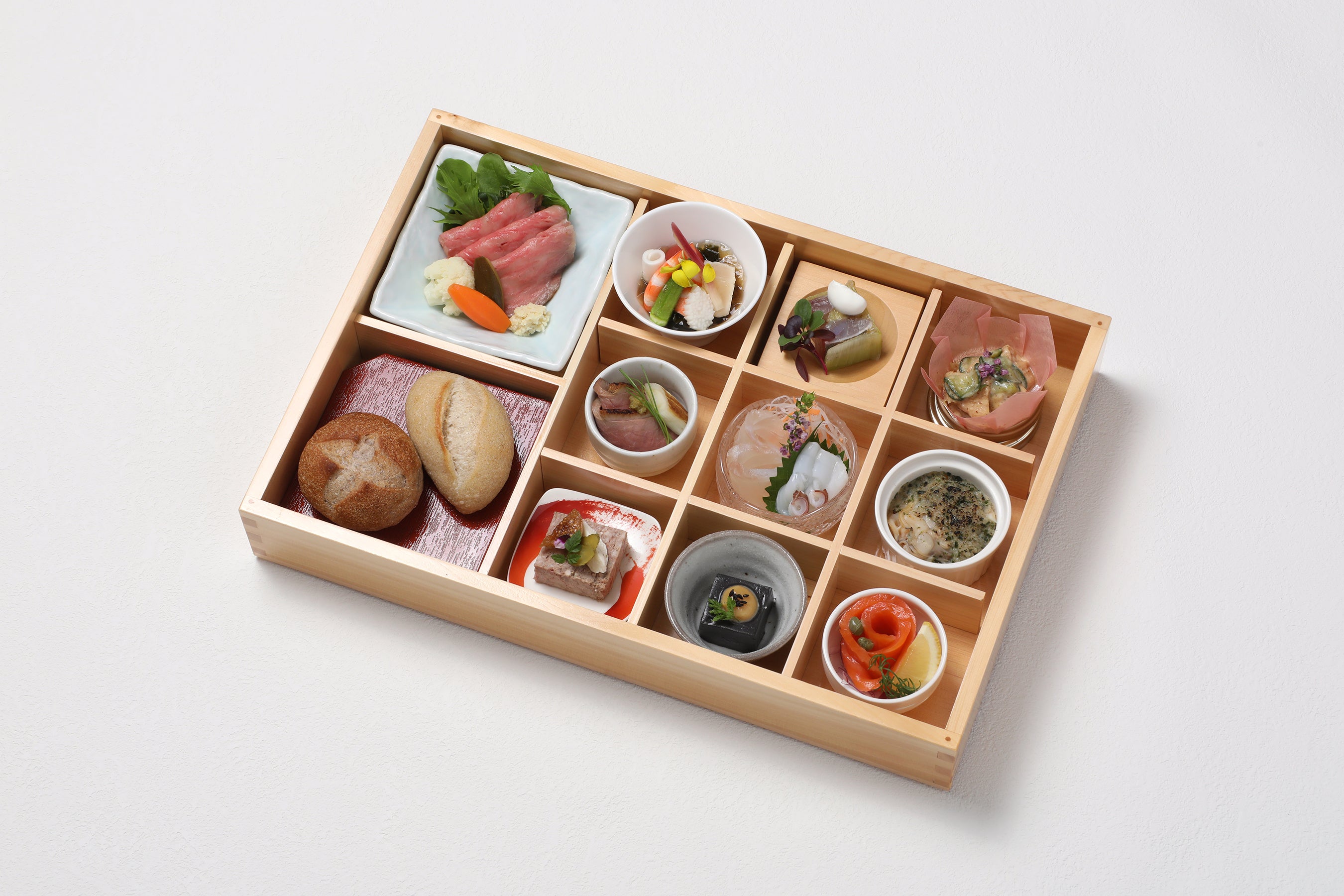 福井市内の中心部に位置し、千百年の歴史を持つ神明神社。地元では「おしんめさん」の愛称で親しまれ、商売繁盛、入試合格、家内安全などのさまざまな願いを込めて、毎日多くの参拝者が訪れています。今回、同神社の料理部門「フレンチの杜 ”moment de joie”」が「福井市食のPR大使」橘ケンチ氏と共に新たな折詰スタイルのランチメニューを開発。福井ならではの食材をふんだんに使い、伝統的なフレンチと掛け合わせた最幸のお料理を提供します。
