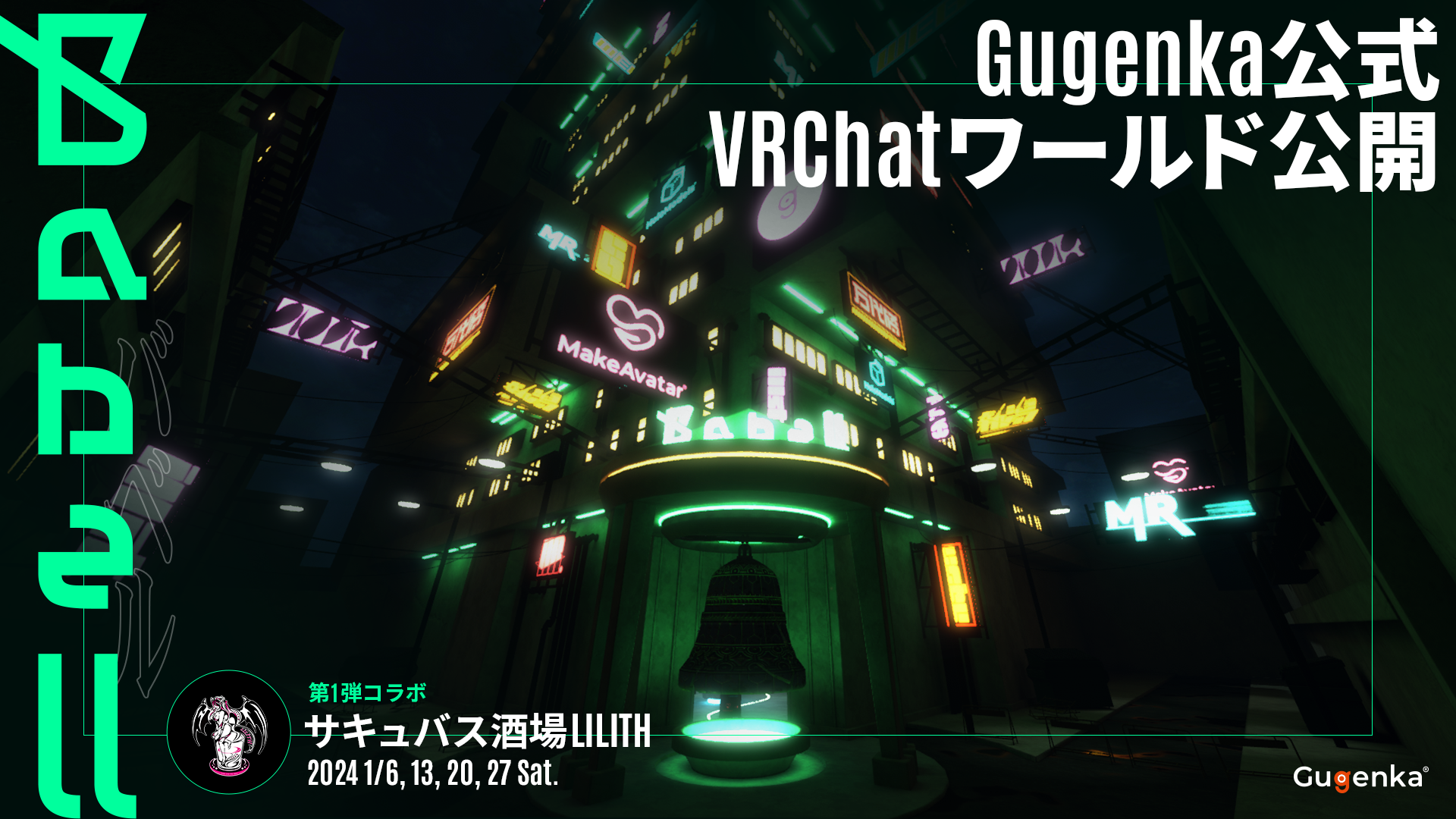 Gugenkaは27日、ソーシャルVR「VRChat」上で有料イベントを開催できる公式ワールド「Project_Babell」を公開した(ワールドのURL)。コラボイベント第一弾として「サキュバス酒場LILITH」の有料イベントを1月の土曜日(6、13、20、27日)に開催する。チケット価格は各2000円で、販売ページはこちら。