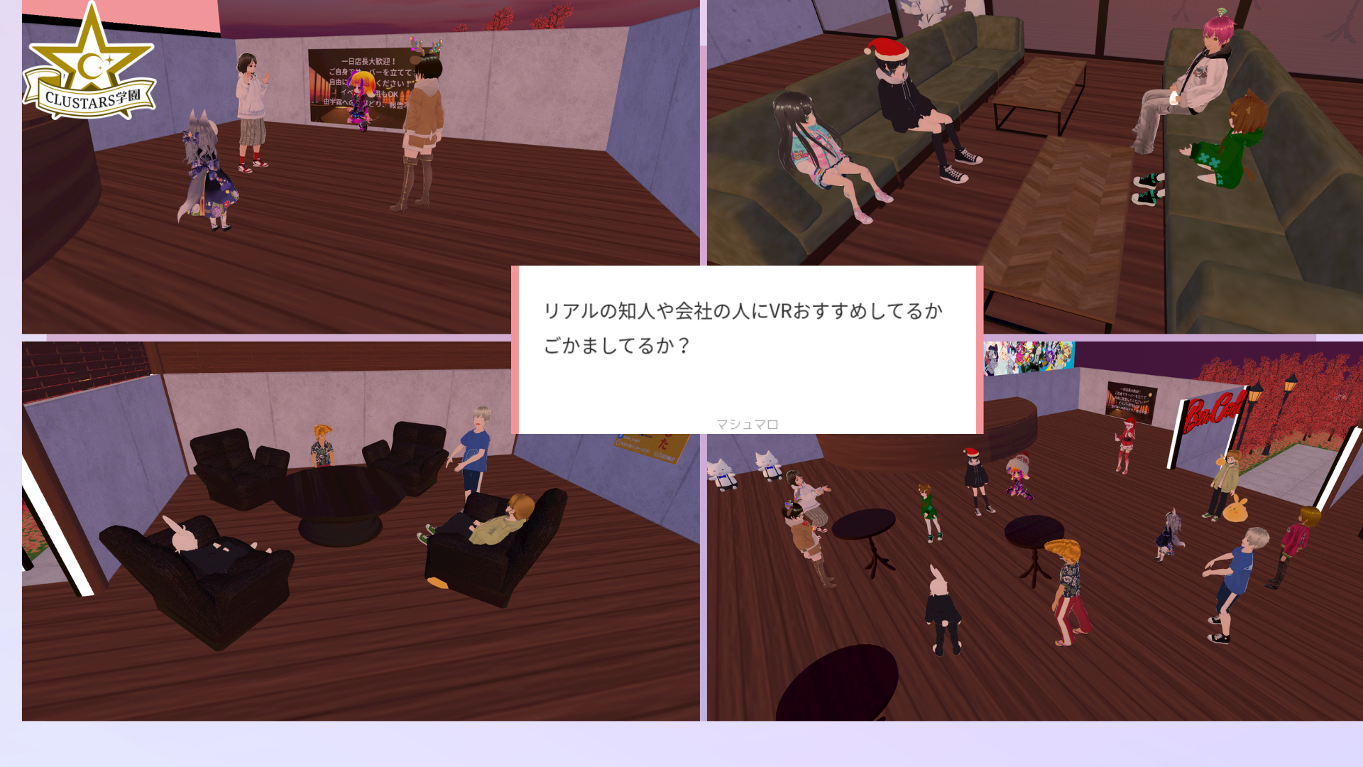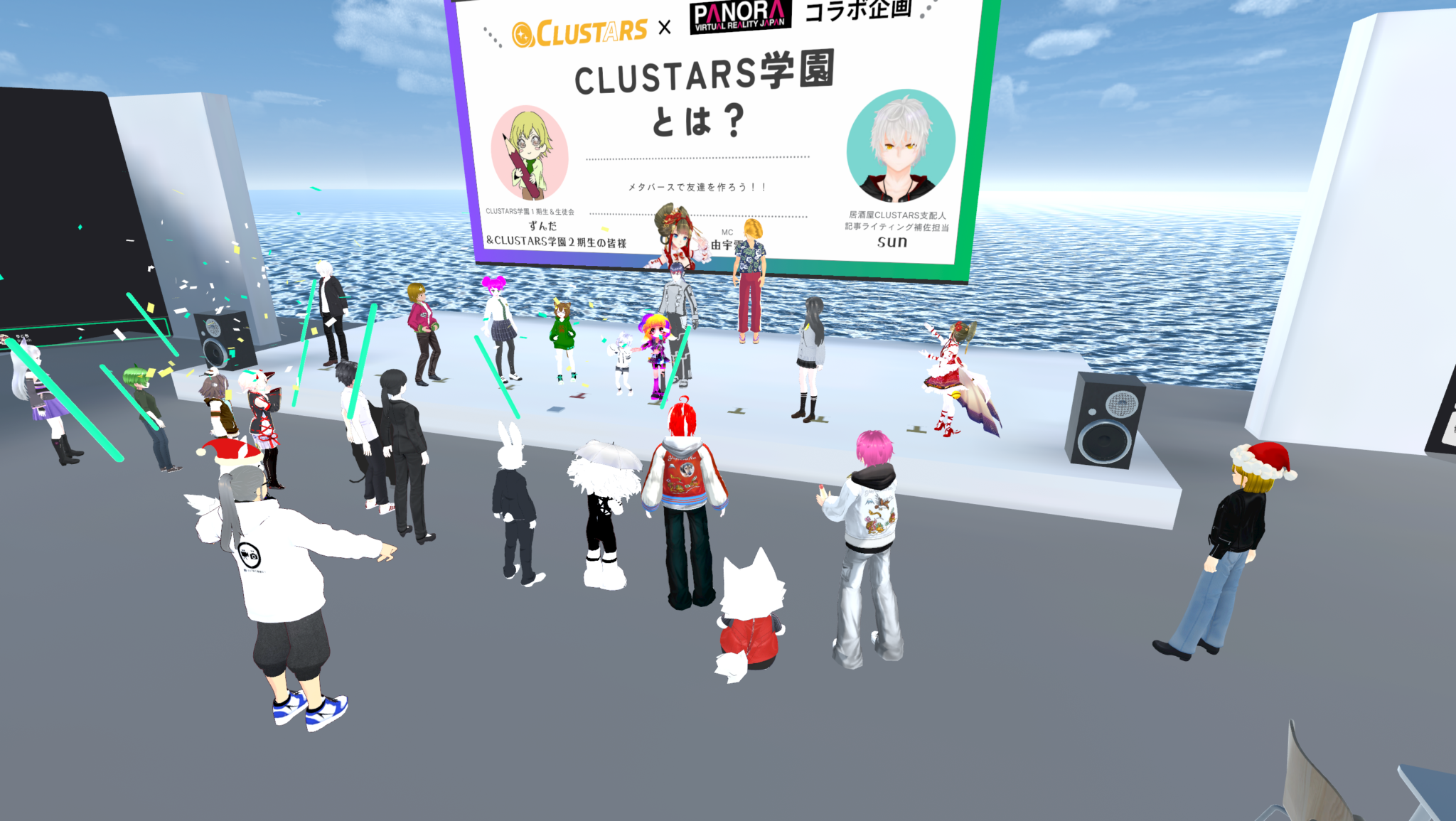 メタバースコミュニティー「CLUSTARS」はPANORA連載コラボ企画として、12月27日21時30分〜22時30分にcluster内で対談会イベントを開催した。第3回目となる今回は、CLUSTARS学園をテーマに対談を実施した。