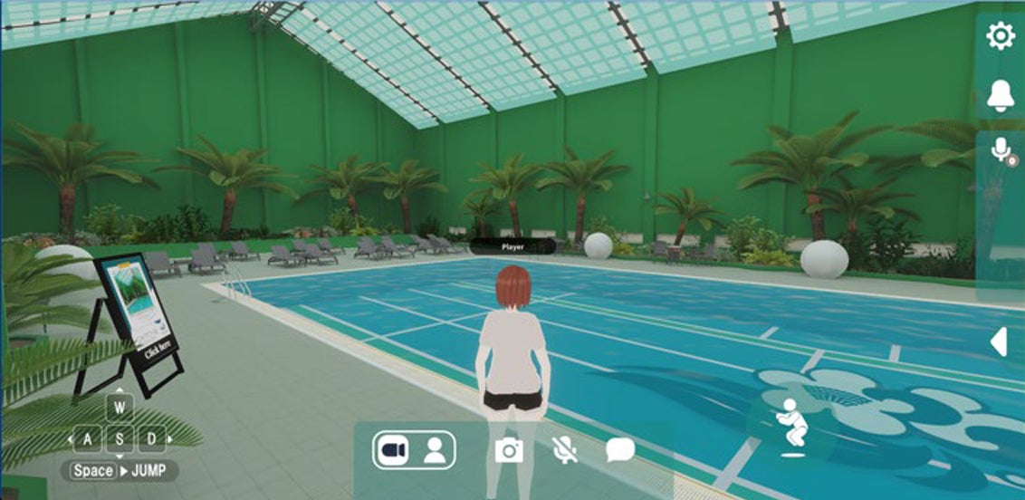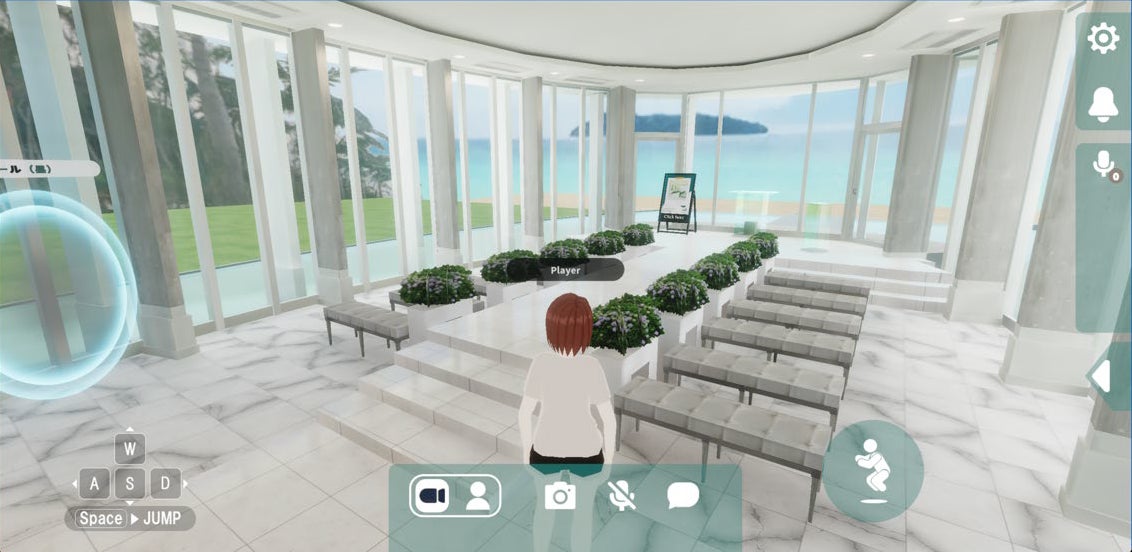 自然な光が差し込むエントランスをメタバース化し、都会の喧騒を離れリゾートの雰囲気を味わえます。