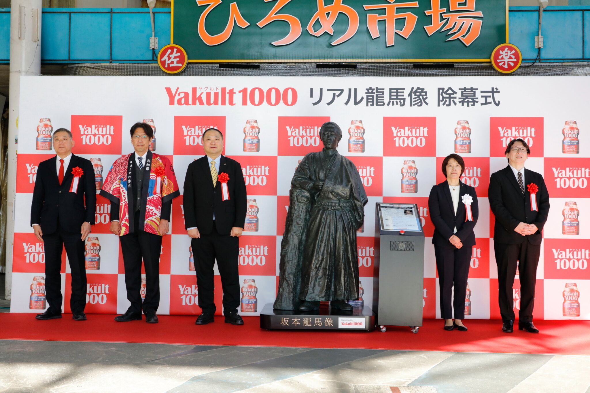 TVCM放映に合わせて、「リアル龍馬」を忠実に再現した「リアル龍馬像」も制作。1月25日(木)に高知県の「ひろめ市場」にて除幕式が開催された。
