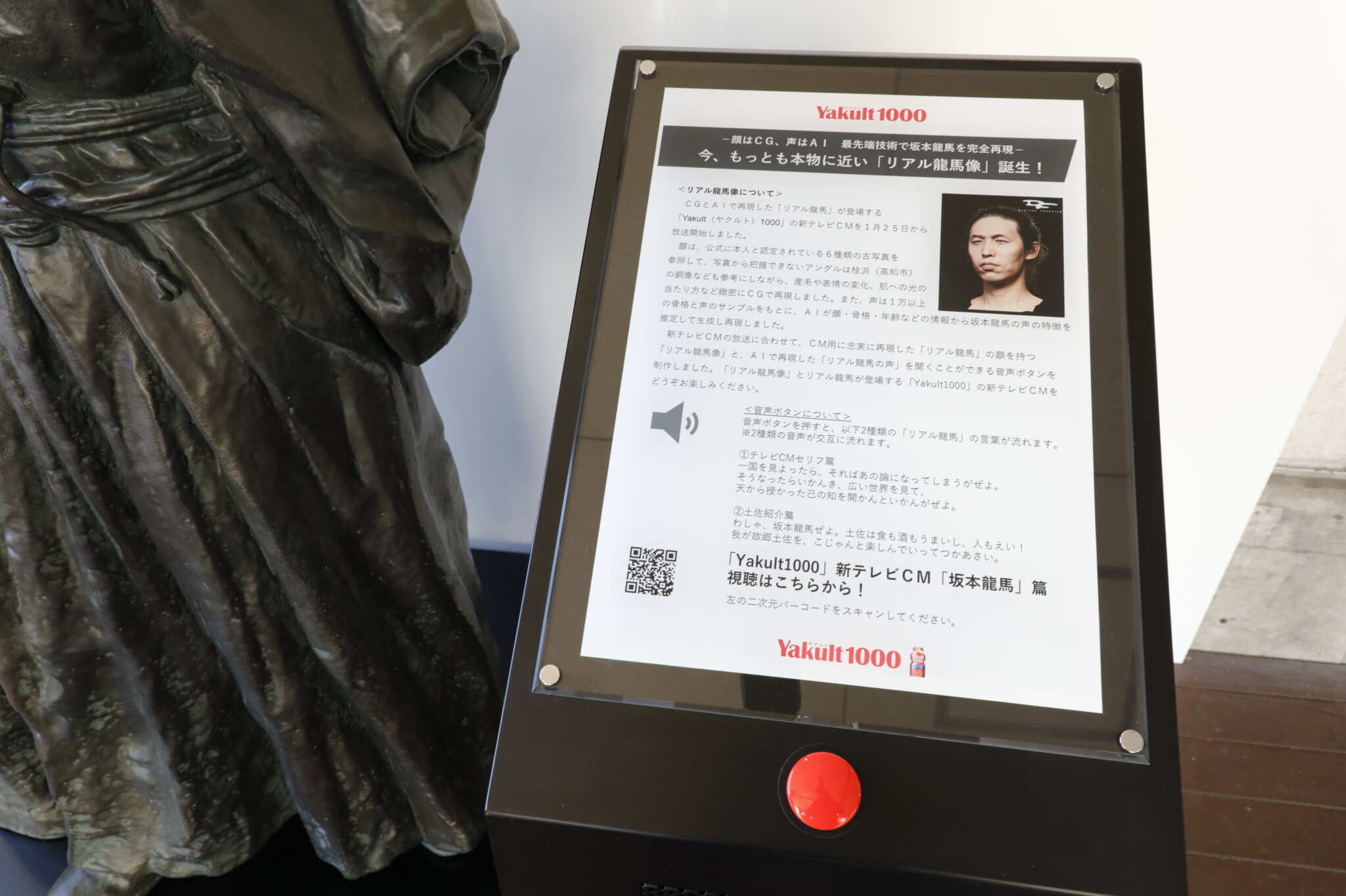 1月25日(木)より、乳製品乳酸菌飲料「Yakult(ヤクルト)1000」の新CMの放送がスタートした。今回公開された「坂本龍馬」篇という映像では、CGで再現した顔とAIで再現した「リアル龍馬」が出演。同日には高知県にて、この 「リアル龍馬」 の音声が再現される「リアル龍馬像」が公開された。