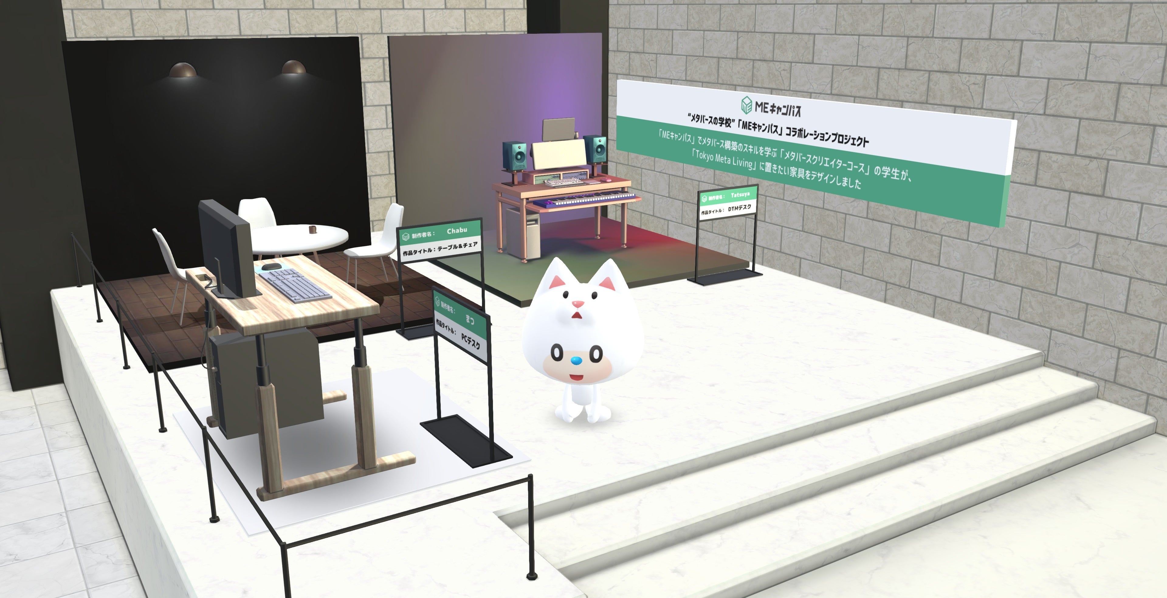 MetaLabが運営する「MEキャンパス」でメタバース構築のスキルを学ぶ「メタバースクリエイターコース」の学生とコラボレーションし、「Tokyo Meta Living」に設置する家具のCG制作を行いました。学生の創り上げた作品は、 メタバース上のロビーでの展示やシミュレーション家具としての導入を予定しています。