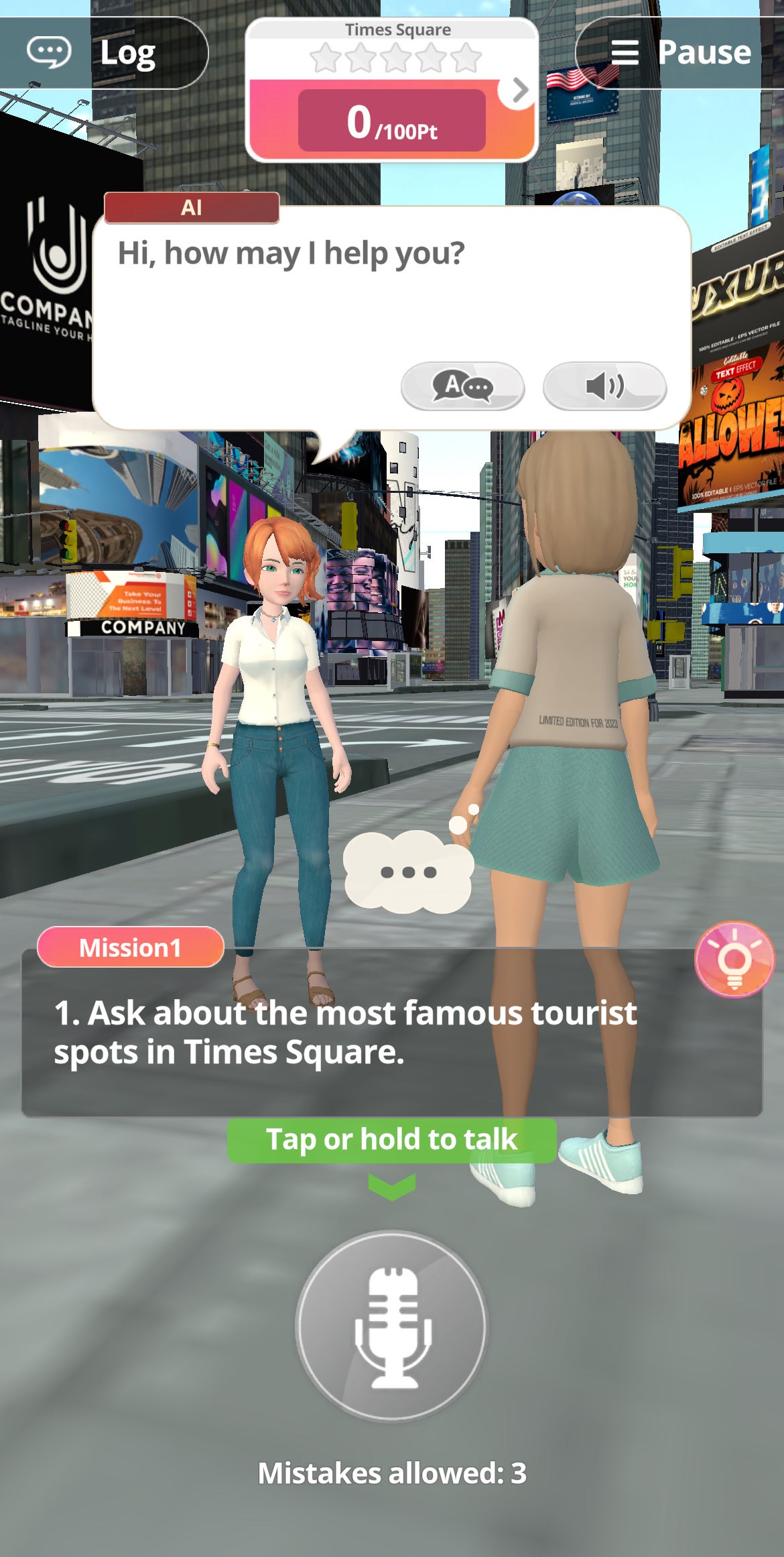 の4つの観光地が3Dで再現された空間で、実際にその場で起こり得る英会話シチュエーションをベースに、ミッションをクリアしていくロールプレイング形式の実践英会話を楽しむことができます。