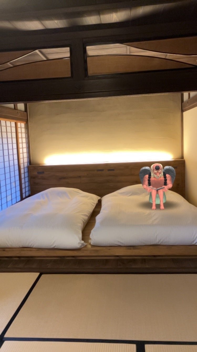 ARは、宿泊する部屋に置いてある専用のコード付きカードをスマートフォンで読み込むと、妖怪が登場する仕組みです。一緒に写真を撮り、SNSに投稿して共有することもできます。妖怪は天狗(=写真)のほか計3種類あり、4か月ごとに入れ替わる予定です。天狗以外にどのような妖怪が登場するかは、宿泊時のお楽しみに。