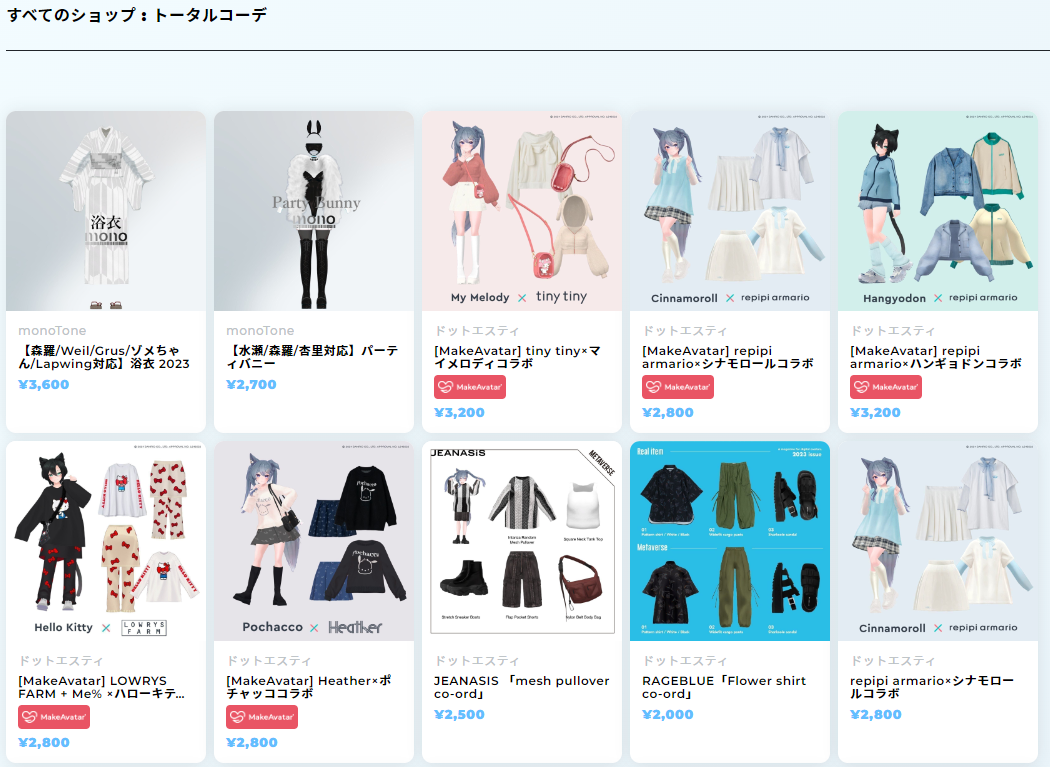 現在は全てのアイテムがスマートフォンで完結できるようにはなっておらず、MakeAvatar対応のアイテムに限定されているほか、アバターもMakeAvatarのものになっている。対応アイテムには「MakeAvatar」のアイコンがついているので、Unityを触るのは難しいけどアバターファッションを楽しんでみたい! という方はぜひ購入してみよう。