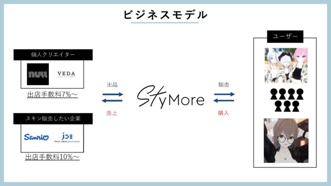 そんなアダストリアが今回発表したのが、ファッション特化型のメタバースプラットフォーム「StyMore」。これまではBoothにてアバター等を販売してきたが、ついに自社で制作から販売まで一気通貫する流れとなる。