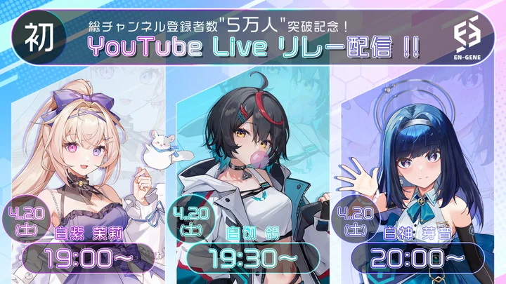 前の記事:Vシンガープロジェクト「En-gene」総チャンネル登録者数5万人 突破記念のイベントが開催