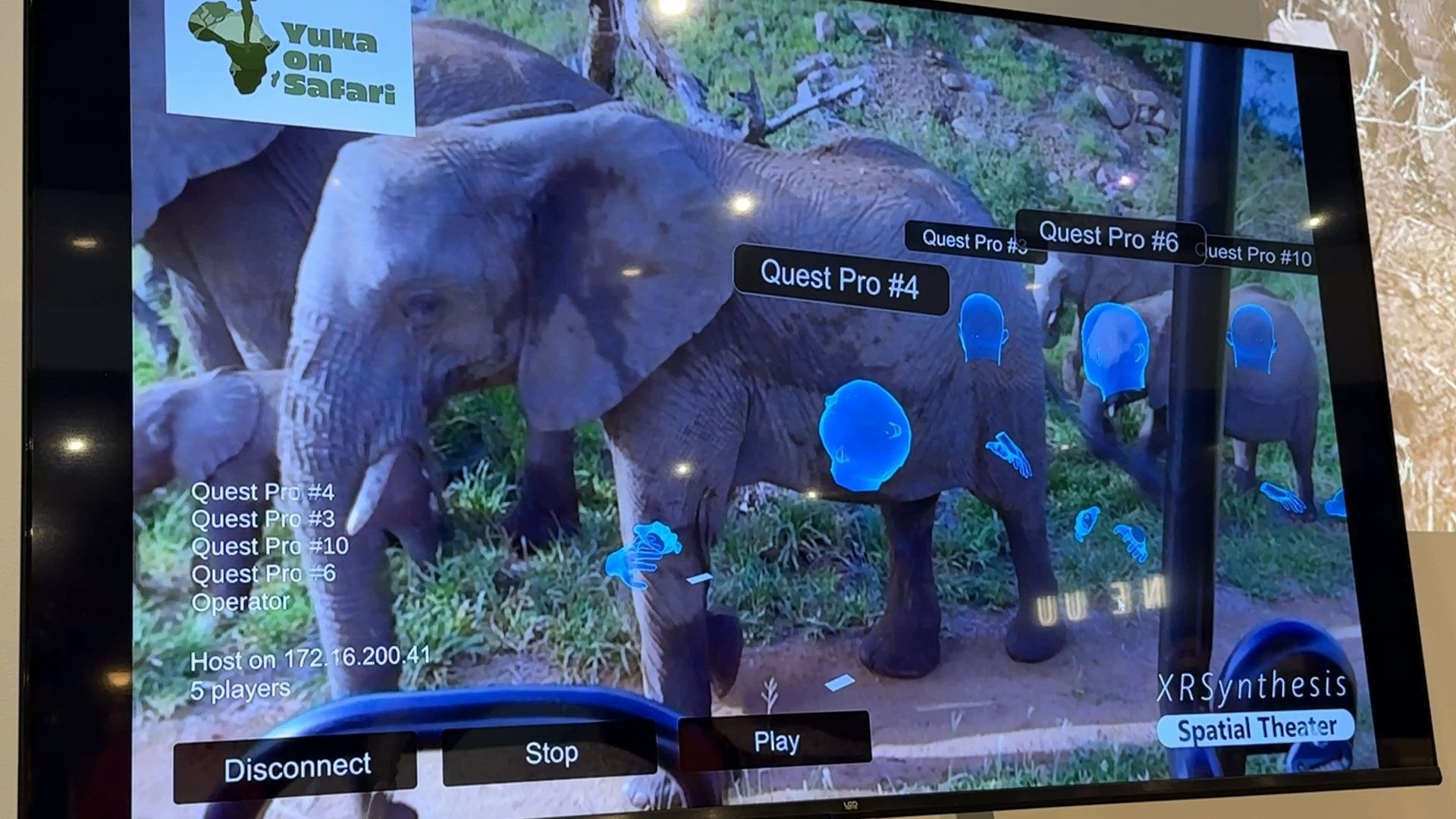 マルチプレイヤー通信は、現場のインターネット接続環境に応じてクラウドネットワークサービスまたはWi-Fiルーターによるローカルネットワークのいずれかを選択可能です。また、実運用の際に必要となるオペレーター端末からのコンテンツ再生制御や、VRヘッドセットの接続状態・バッテリー残量等の監視機能、途中参加機能等を備えています。「バーチャルサファリ」体験会においては、最大8名の体験者が約30分間のコンテンツを支障なく同時視聴することができました。