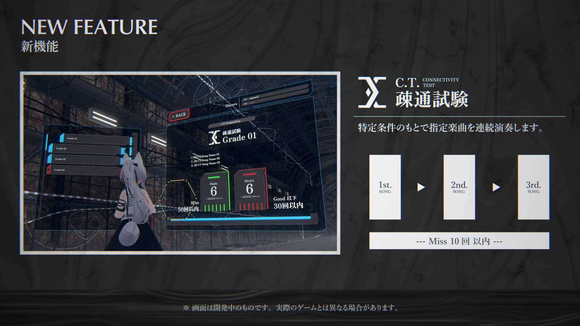 「課題曲3曲通してミスを10回以内に抑える」など、特定条件で連続演奏するチャレンジモード。難易度の選択が可能だ。