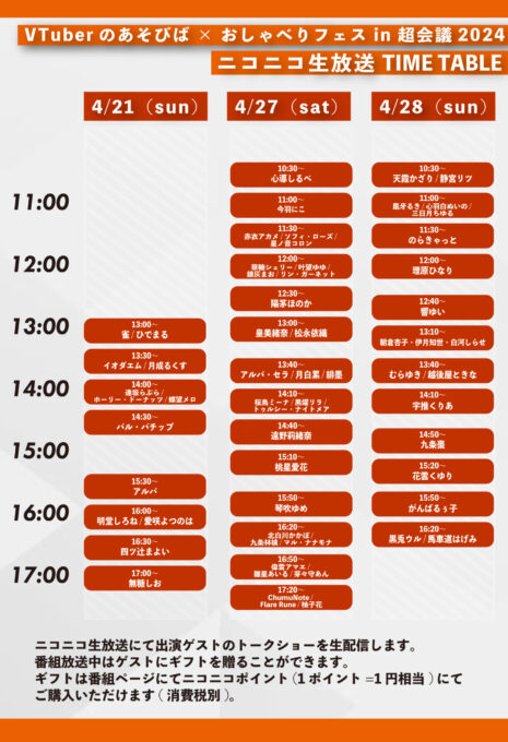 PANORAは4月27、28日、VTuberさんと1対1でお話しできるイベント「VTuberのあそびば×おしゃべりフェス in 超会議 2024」をドワンゴが幕張メッセにて開催するネットコンテンツの祭典「ニコニコ超会議2024」内で開催します(公式ページ)。場所はホール3のA18です(全体MAPのPDF)。
