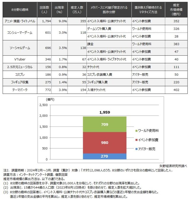 矢野経済研究所は29日、2024年2月~3月に実施した「オタク」におけるメタバースのアンケート調査を発表した。