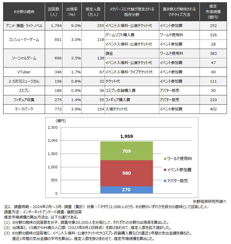矢野研、オタク向けメタバースの調査 ワールド709億円、イベント980億円、アバター270億円の市場規模1959億円