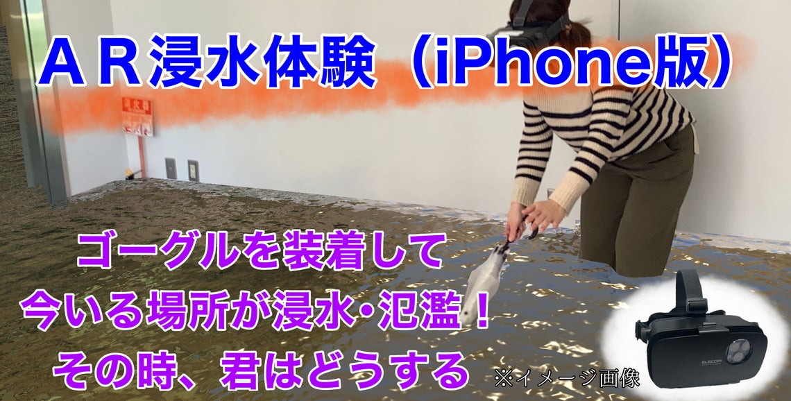”防災訓練”と聞くと地震や火災、水害は”津波”のイメージではないでしょうか。しかし近年では非常に強い勢力の台風、線上降水帯による◯年に1度の大雨と言われるような未曾有の被害が当たり前に発生、毎年死者が出ており、「自分が住んでいるところは大丈夫」は通用しなくなりつつあります。 AR浸水体験では現実にCGを重ね浸水させ、可視化して自分事と捉えることができます。 ゴーグルを装着すると足元が見えなくなります。普通に歩いて進むことは非常に困難です。怪我だけではなく命の危険も伴います。 当法人ではこの体験をすることにより浸水した際の避難方法を推奨するのではなく、なるべく実践する必要のないよう【浸水する前の避難の大切さ、浸水時の命を守る行動】について説いています。