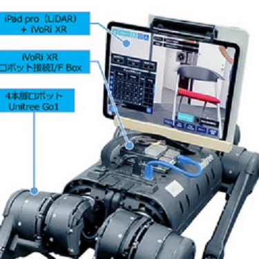当社製品のiVoRi XR(アイヴォリィエックスアール)を4足走行ロボットへ連携することにより、ロボットの目・頭脳となるオプション機能です。 ロボットへiPad Proを搭載し、LiDARセンサーをアプリを活用することで、自己位置推定機能により、ロボットの場所を把握する事が出来ます。 定義したルートを自動巡回、もしくは遠隔からの操縦により、ロボット移動・AR写真撮影が可能となります。 施工現場の毎日の巡回施工記録、映像共有による遠隔現場巡視などの業務に活用が可能です。