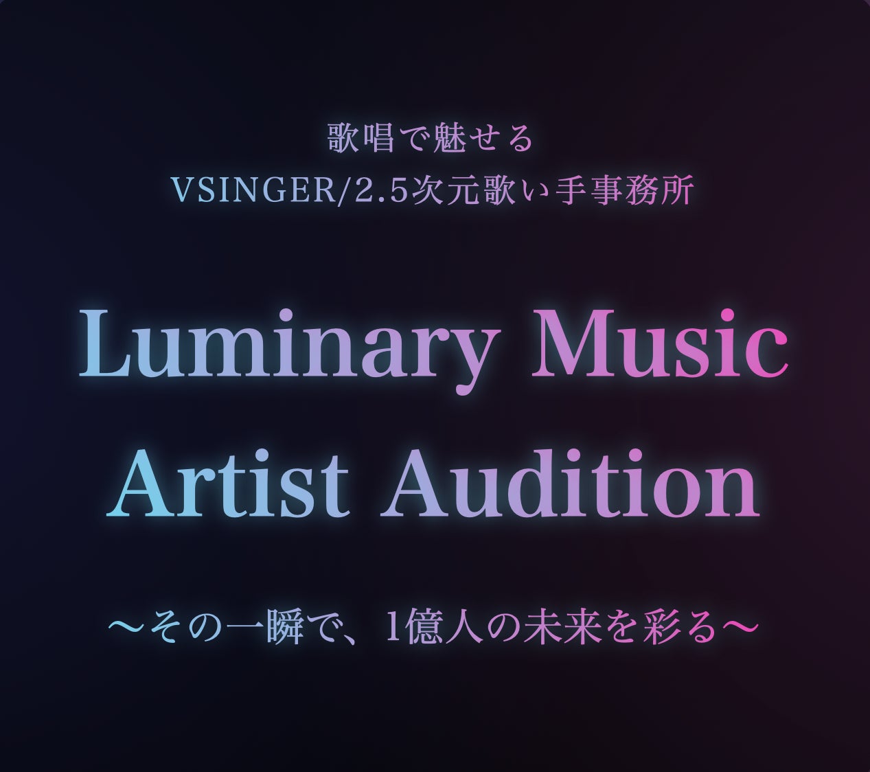 Luminary Musicは、事務所に所属するアーティストのオーディション開催と、エントリー受付を開始したことをお知らせいたします。