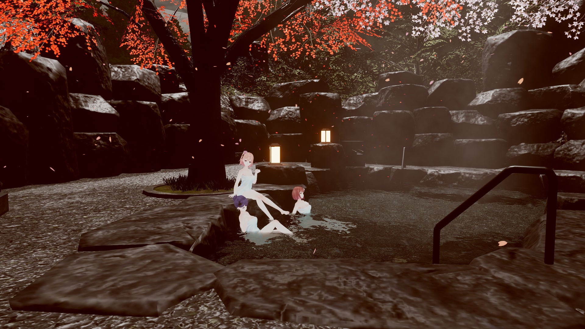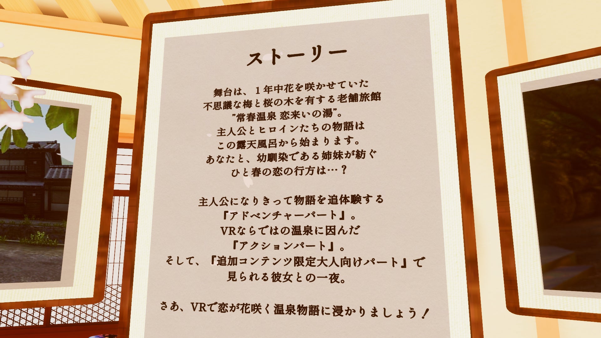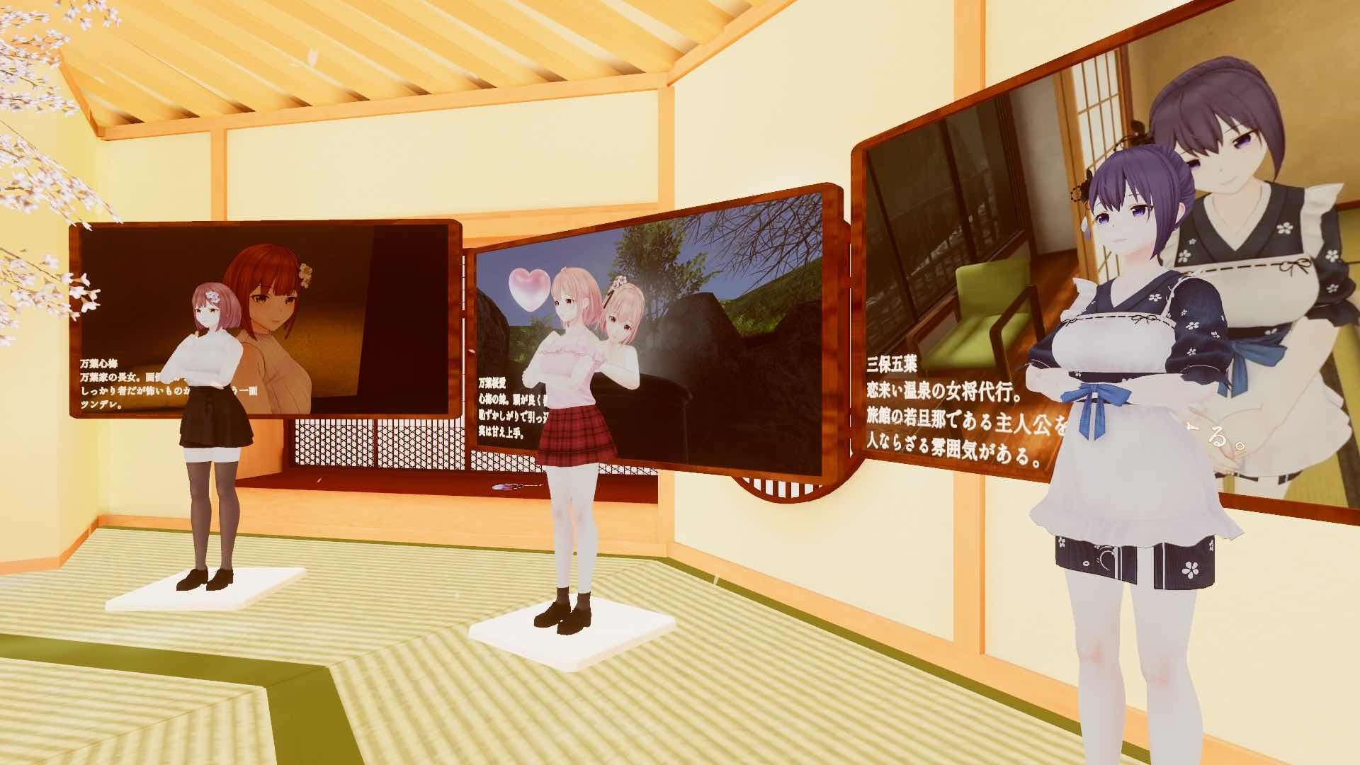 ULTRANOVA Entertainmentの手掛ける人気ゲームをVR化した『恋来い温泉物語VR』の製品ページを没入感のあるVR空間に現出させVRChatでワールドとして公開した。