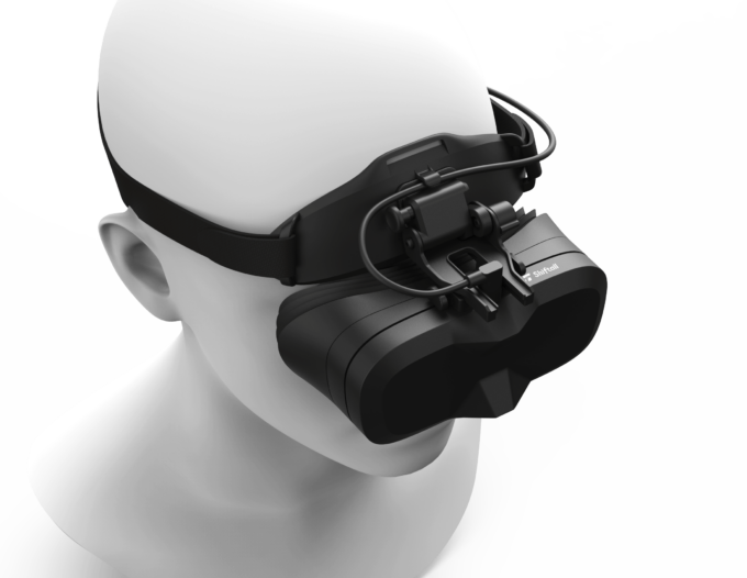 本体にはデュアルマイク、電動IPD調整機構、メガネ要らずのピント調整機構(0D~-7D)を全て搭載したうえで、本体重量185g未満を実現している。さらに、フリップアップ機構を備え、短時間のうちにVR空間と現実空間を行き来するような用途にも応えるとのこと。