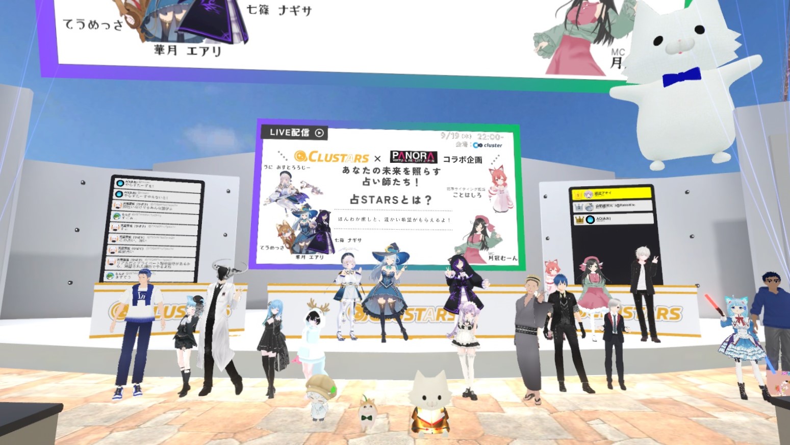 失敗上等!! 挑戦する人のためのメタバースイベントコミュニティ「CLUSTARS」。そのなかで占いイベントを主催する占STARSを代表する皆さんに直接インタビューしたよ!今回の企画では、占STARSのうに あすとろろじーさん、華月エアリさん、七篠ナギサさん、てうめっささんの4人の方にインタビューして占STARSの魅力や活動について、4人の活動についてお聞きしたよ。
