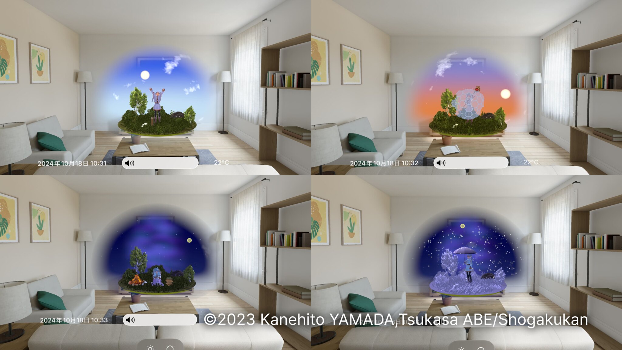 SunnyTuneとは、Apple Vision Pro向け天気体感アプリだ。起動すると目の前に現実世界の天気と連動した小さな空間が現れ、雨や風の音、木や草が揺れる音など、目や耳を通して天気の変化を感じることができる。