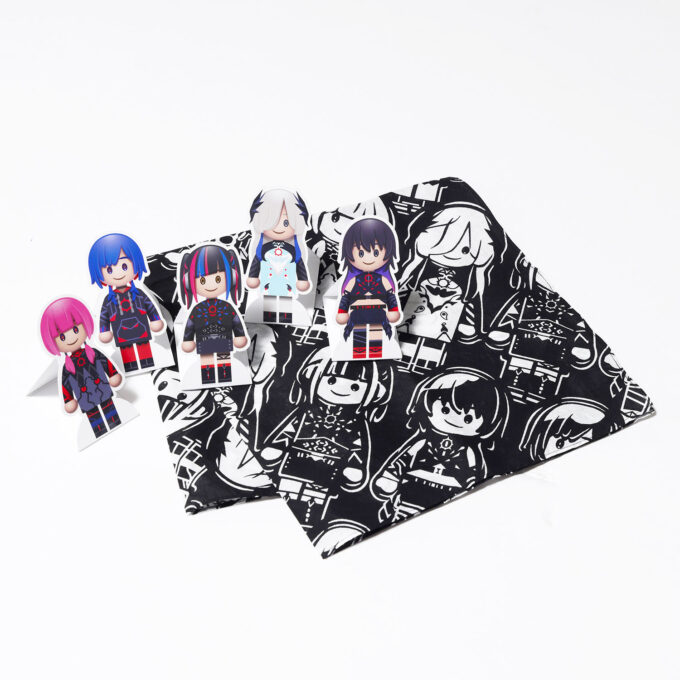 パッケージには、CDのほかキャラクターペーパースタンド5個セット&バンダナを同梱。パッケージデザインはPanasony™️が手がけた。