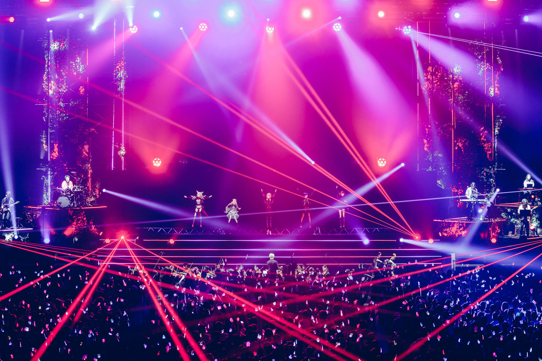 5人のメンバーそれぞれのモチーフが絡み合うオープニング映像から、バンドメンバーとKAMITSUBAKI STUDIOによるオーケストラプロジェクト「KAMITSUBAKI PHILHARMONIC ORCHESTRA」による演奏が会場を盛り上げる中、この日の主役たるV.W.Pのメンバーが登場した。