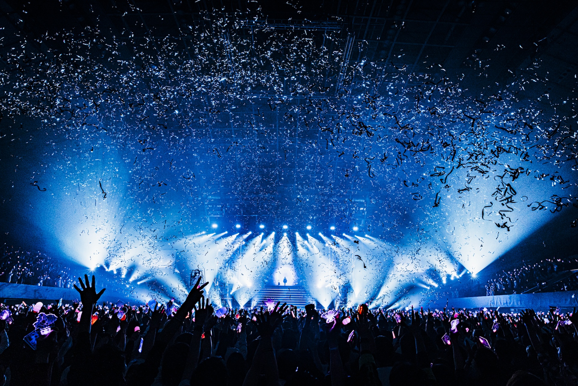 ライブが始まるカウントダウン映像が始まると大きな歓声が上がり、「5! 4! 3! 2! 1!」と約5000人を超える観客らが声をあげていく。ただ、オープニング映像が始まれば観客はシンと静まり返り、固唾を飲んで映像を見守る。