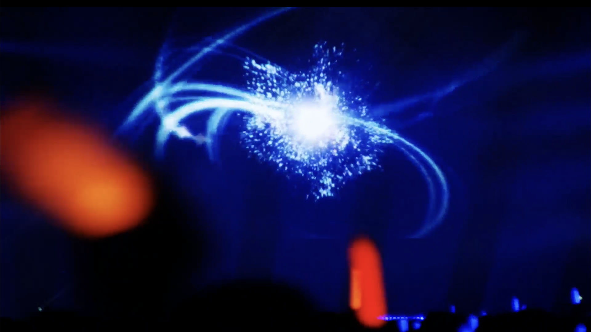 本編が終わるやいなや始まった「アンコール!」という大きな合唱。少し時間があり、バンド隊の演奏とともにステージの真ん中で楕円形の光があらわれ、グルグルとまわり始める。