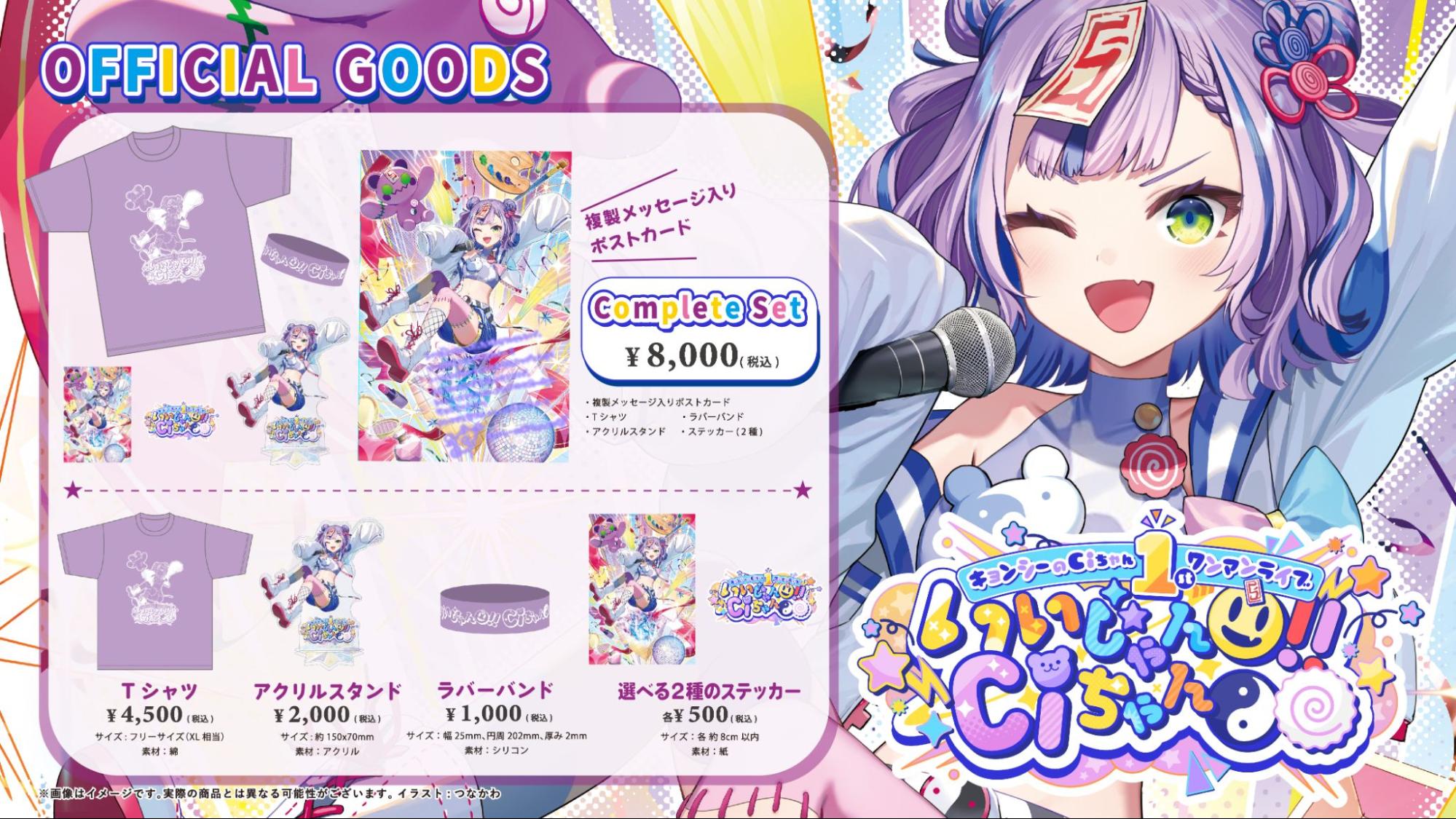 また、ライブ開催に伴って、ライブグッズの制作も決定。グッズラインナップはTシャツが4500円、アクリルスタンド2000円、ラバーバンド1000円、選べる2種のステッカー各500円、複製メッセージ入りポストカード付きのコンプリートセットが8000円となっている。