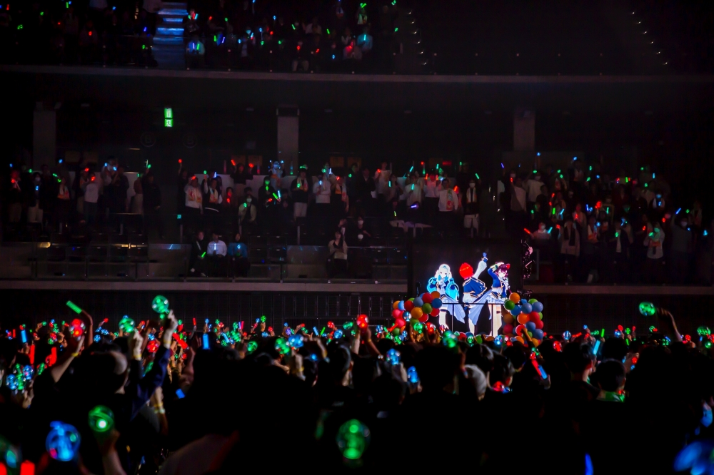 戌亥も加わった3人でのMCを挟んだ5曲目は、戌亥とリゼのデュエット。ステージ上でリゼに可愛い猫耳と尻尾が生えると、会場からは歓喜の声。