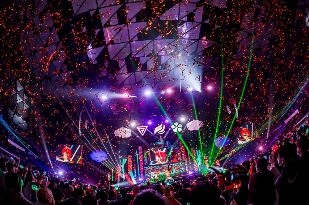 続けて、にじさんじのソロシングルCDプロジェクト「FOCUS ON」の収録曲「猪突猛進☆セレナーデ」も披露。可愛いく元気な王道ポップスで、真っ赤に染まった会場をさらに盛り上げていく。ダンスもキュートで、さすがにじさんじの「公式美少女」だ。間奏で舞台袖に消えると、すぐに2階ステージに登場。広い会場のさらに奥まで歌声と輝きを届かせていた。