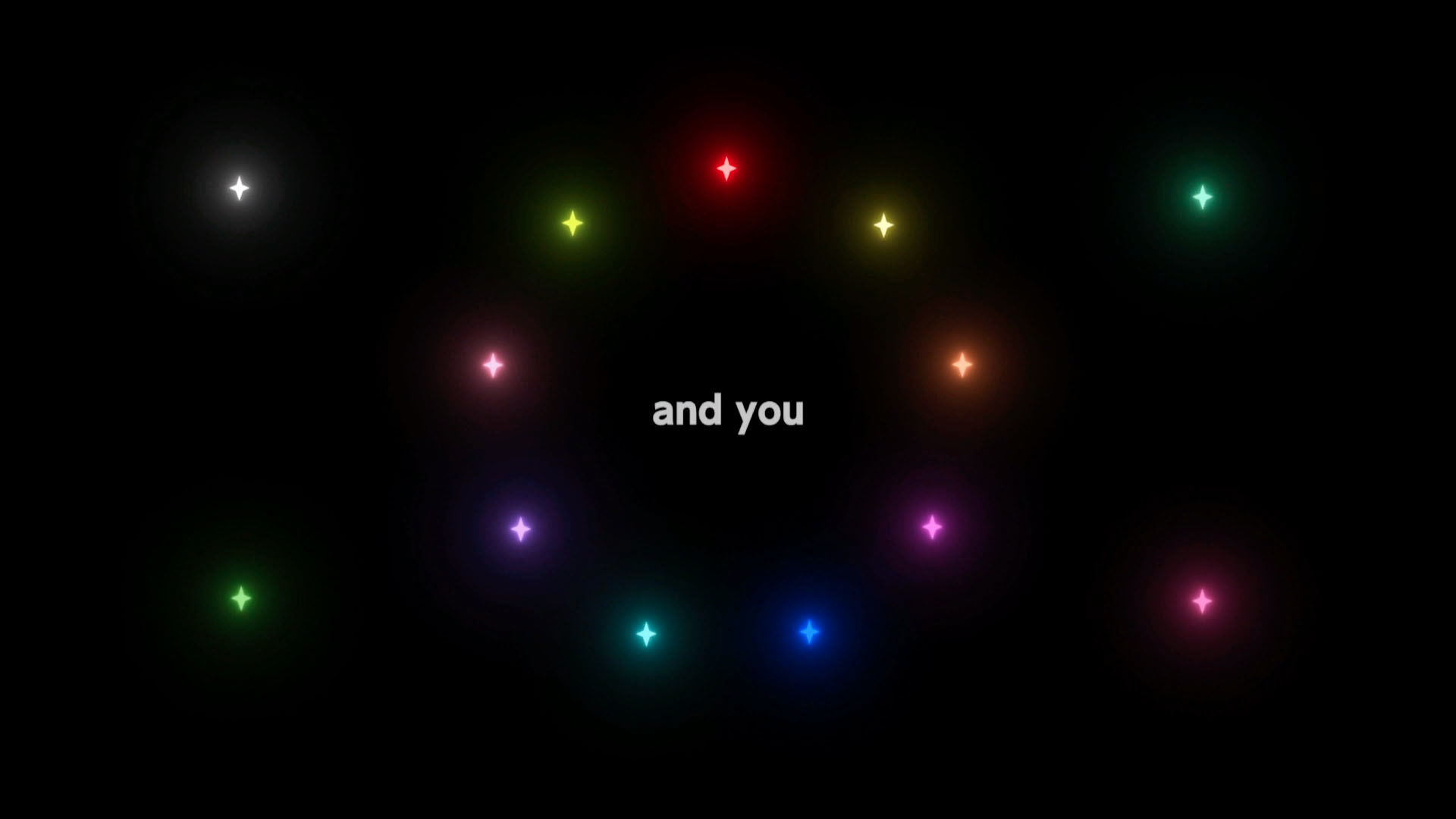 エンドロールが切れたのち、9つの輝きが円となり、外側に先ほど抜けた4つの輝きが鎮座して、中央に現れたのが「and you」の文字。