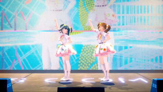 例えば、彼女たちの体が本当に美しい。メタい話になるが、キャラクターのテイストを残しつつ、肉感的でもある3Dモデルがよく生み出せたものだと、改めて3時間驚きっぱなしだった。このバランスが絶妙で、前にも触れたが特に太ももの生々しさがすごい。イラスト的に強調するわけではなく、本当にいる(本当にいるのだが)アイドルを自然と感じさせる健全な魅力だ。