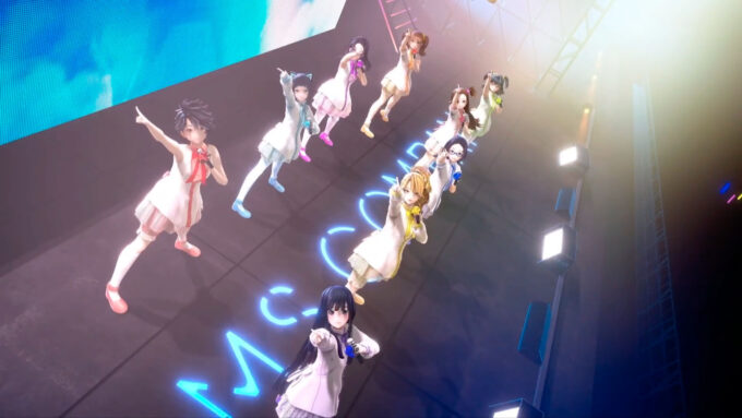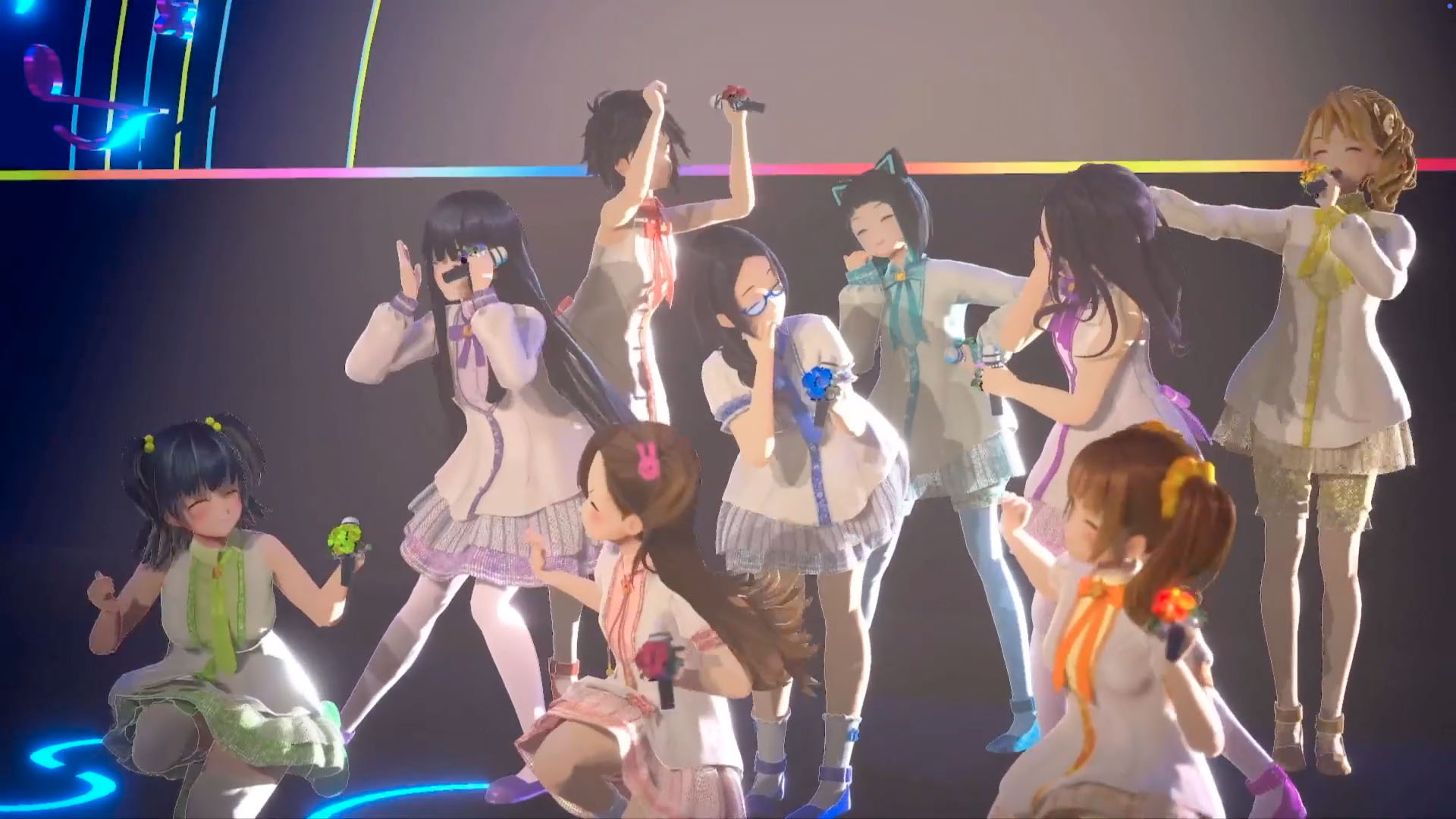 続けて画面左上から右にかけて輝きが次々と降ってくる。その数9つ。最後に右端に見えたライムグリーンは、最後に入ってきたメンバーの小瀬戸らむだ。
